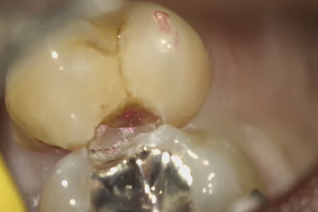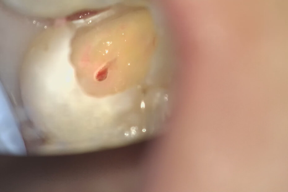 当院ではマイクロスコープを用いて、神経からの出血の様子や色、組織の状態を詳しく観察し、できる限り歯の神経を残せるように努めています。
