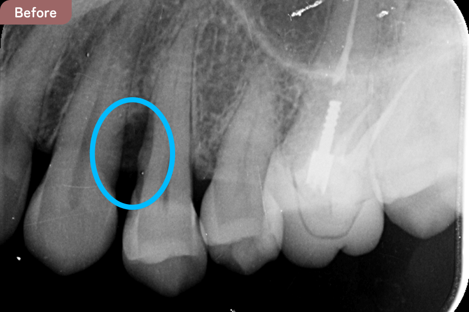 また、状態に応じて骨補填材(人工骨)やメンブレン(再生膜)を併用し、再生スペースを確保して骨の再生を助けることもあります。